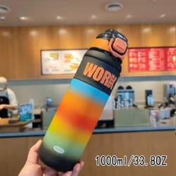 Stay refreshed and hydrated on the go with this stylish 1L Multicolor Water Bottle. Designed with vibrant colors and functional features, it includes a built-in straw and a secure dustproof lid. Perfect for gym workouts, school, travel, or everyday use.