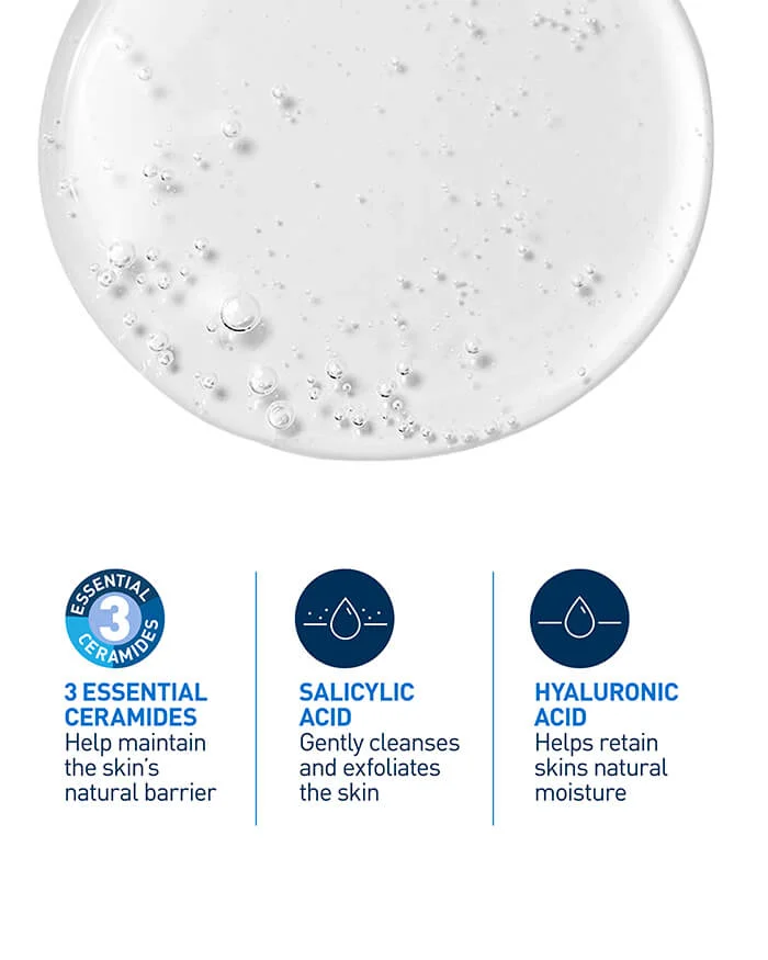 CeraVe SA Smoothing Cleanser is a gentle exfoliating face and body wash developed with dermatologists to smooth and soften rough, bumpy skin. Infused with salicylic acid, it effectively exfoliates dead skin cells without disrupting the skin’s natural barrier.
