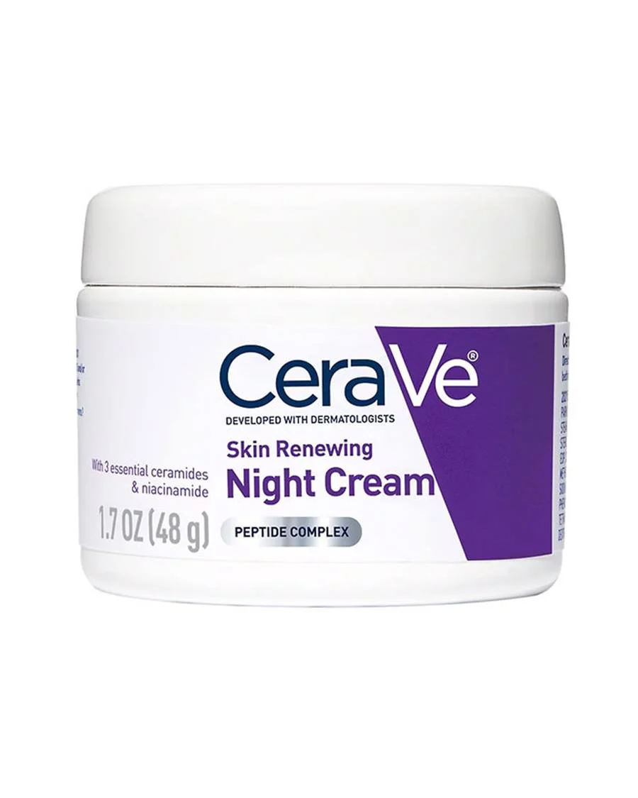 CeraVe Skin Renewing Night Cream is a deeply hydrating and restorative night cream designed to revitalize tired, dull, or aging skin while you sleep. Enriched with biomimetic peptides, ceramides, niacinamide, and hyaluronic acid, this non-comedogenic formula works overnight to support the skin’s natural barrier, improve elasticity, and reduce the appearance of fine lines and wrinkles.