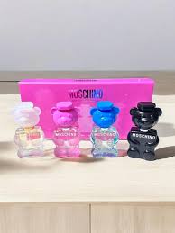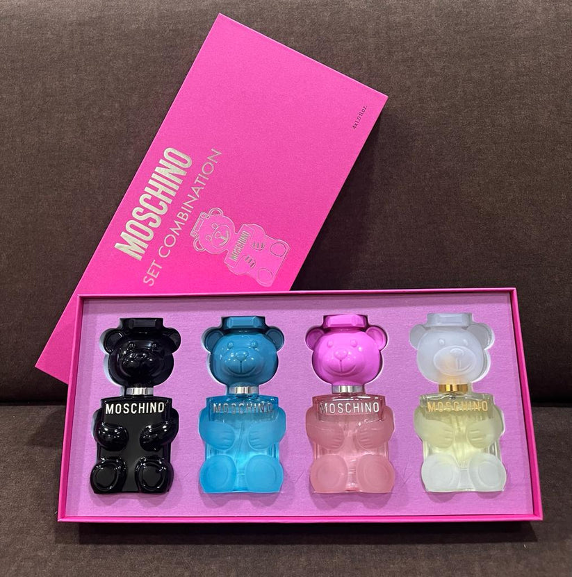 Unleash playful sophistication with the Moschino Teddy Bear Fragrance Set. This adorable collection features four iconic Moschino scents, each housed in a vibrant bear-shaped bottle. With their unique character and fun aesthetic, these perfumes are perfect for collectors and trendsetters alike.