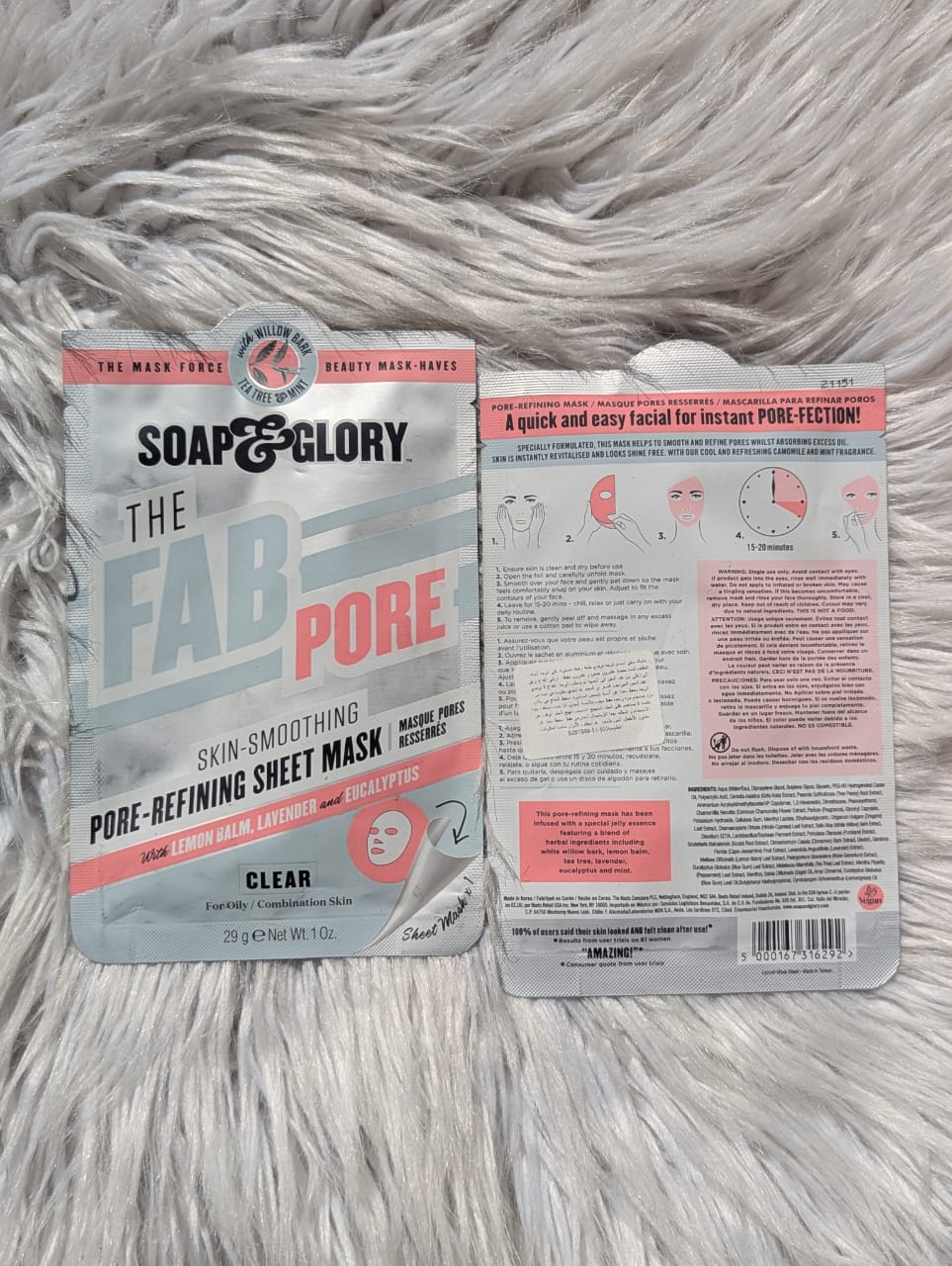 Soap & Glory’s The Fab Pore Skin-Smoothing Pore-Refining Mask is designed to visibly smooth and refine the appearance of pores in just one use. Powered by PORE-BLOK™ technology and infused with ingredients like willow bark, tea tree, eucalyptus, lavender, and mint, this refreshing sheet mask targets oily and combination skin types. It leaves the skin feeling cool, clarified, and instantly revitalized.